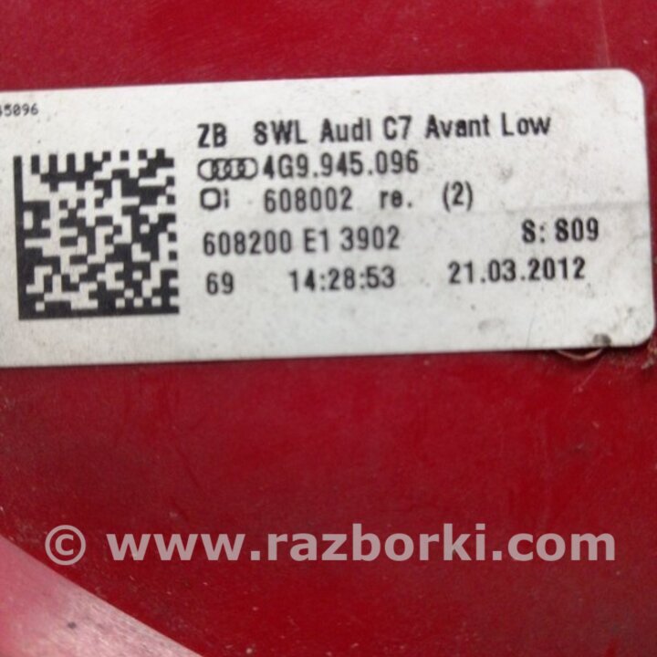 ФОНАРЬ ЗАДНИЙ ПРАВЫЙ AUDI (АУДИ) A6 C7 4G (11-18) 4G9945096