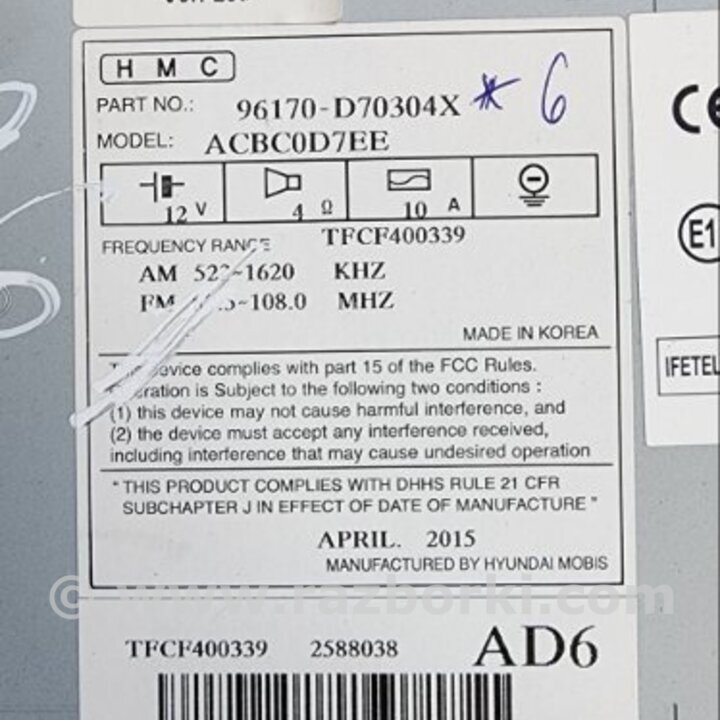 МАГНИТОЛА HYUNDAI TUCSON III TL (15-21) 96170D70304X