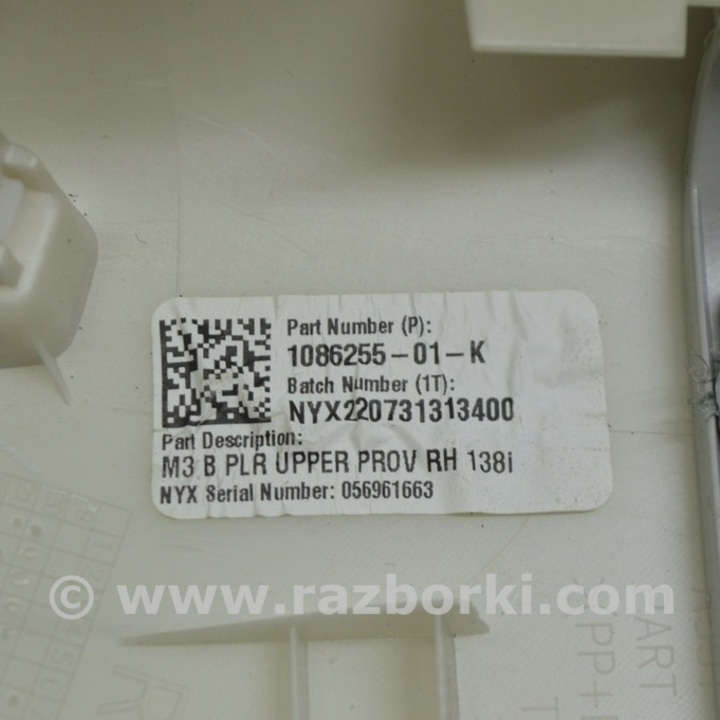 НАКЛАДКА ЦЕНТРАЛЬНОЙ СТОЙКИ ВЕРХНЯЯ РЕМЕНЬ ПРАВАЯ TESLA MODEL 3 1086255-01-K