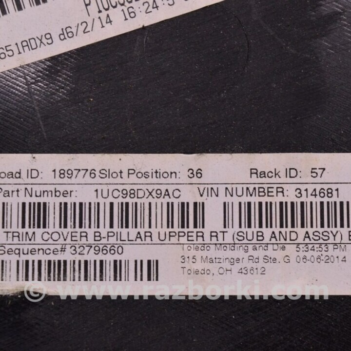 НАКЛАДКА ЦЕНТРАЛЬНОЙ СТОЙКИ JEEP CHEROKEE KL (2013-2023) 6FF58DX9AA