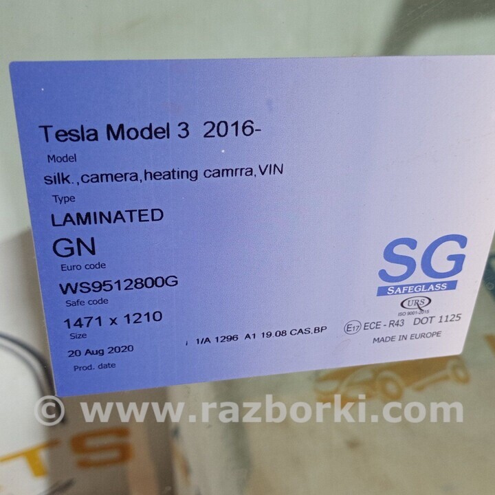 ВЕТРОВОЕ СТЕКЛО МЕСТОМ ПОД ДАТЧИК ДОЖДЯ TESLA MODEL 3 WS9512800G