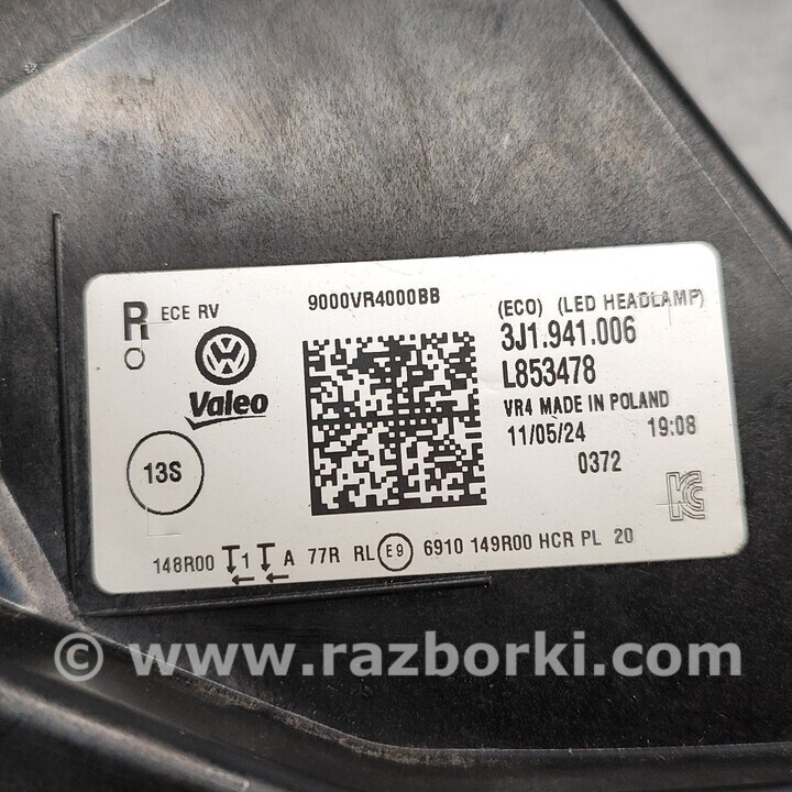 ФАРА ПЕРЕДНЯЯ ПРАВАЯ VOLKSWAGEN PASSAT B8 (07.2014-...) 3J1941006