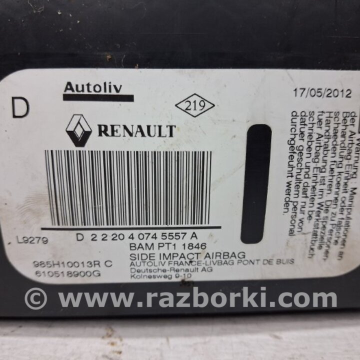 ПОДУШКА БЕЗОПАСНОСТИ В КРЕСЛО RENAULT MEGANE 3 985H10013R