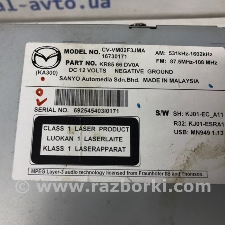 МАГНИТОФОН MAZDA CX-5 KE (12-17) KR8566DV0A