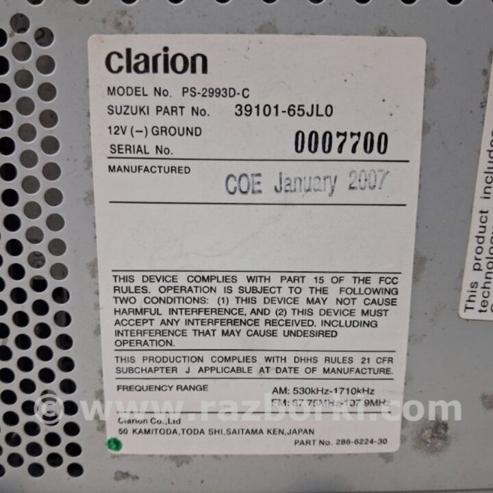 МАГНИТОФОН SUZUKI GRAND VITARA 3910165JL0