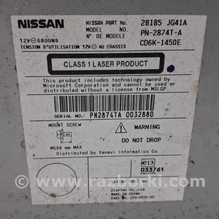 МАГНИТОФОН NISSAN QASHQAI (07-14) 28185JG41A