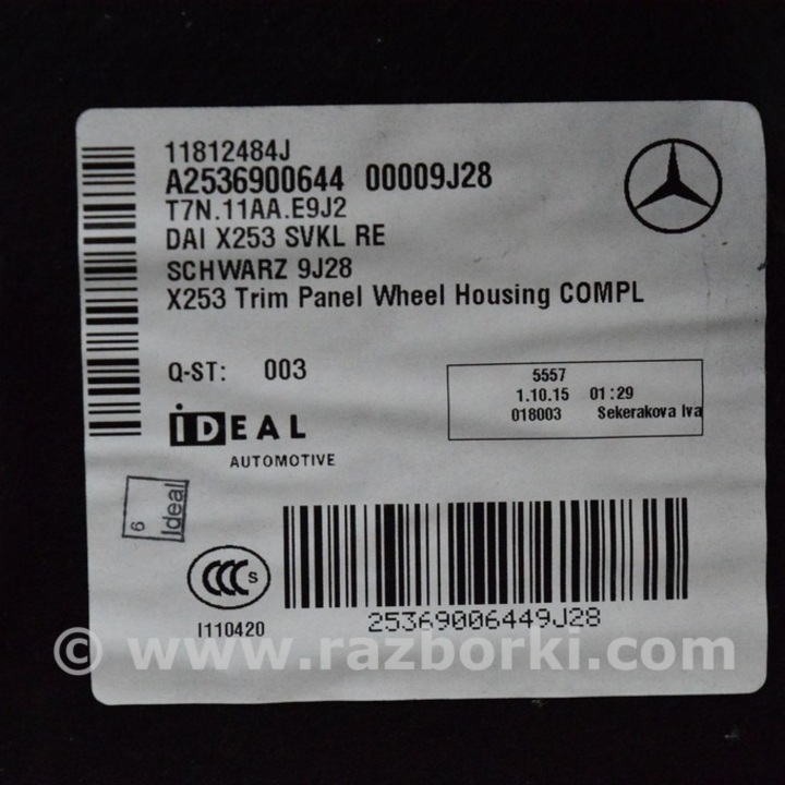 ОБШИВКА АРКИ ПРАВАЯ MERCEDES-BENZ GLC X253 A2536900644