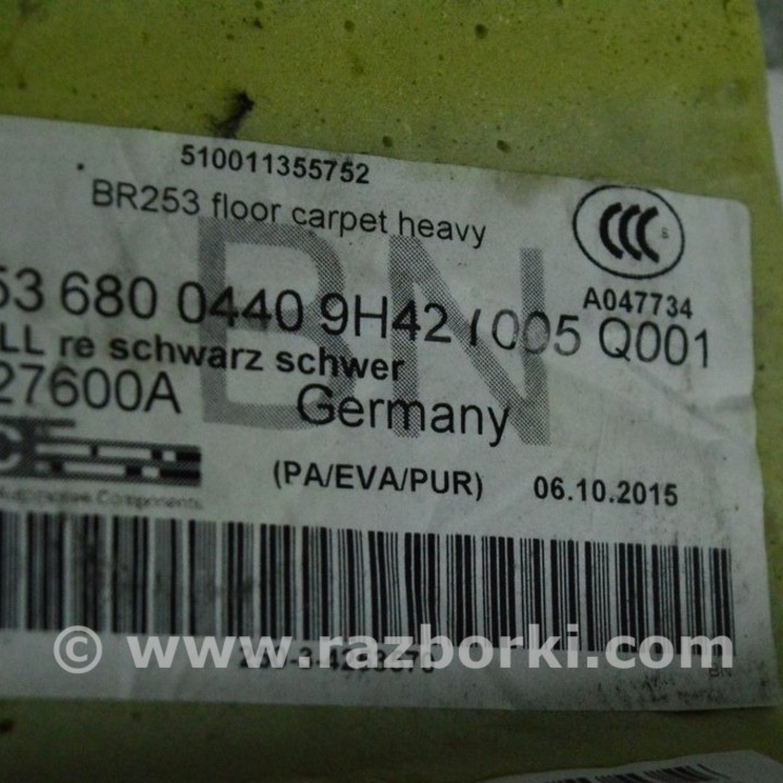 ПОКРЫТИЕ ПОЛА ПЕРЕД ЛЕВАЯ ЧАСТЬ MERCEDES-BENZ GLC X253 A2536800340