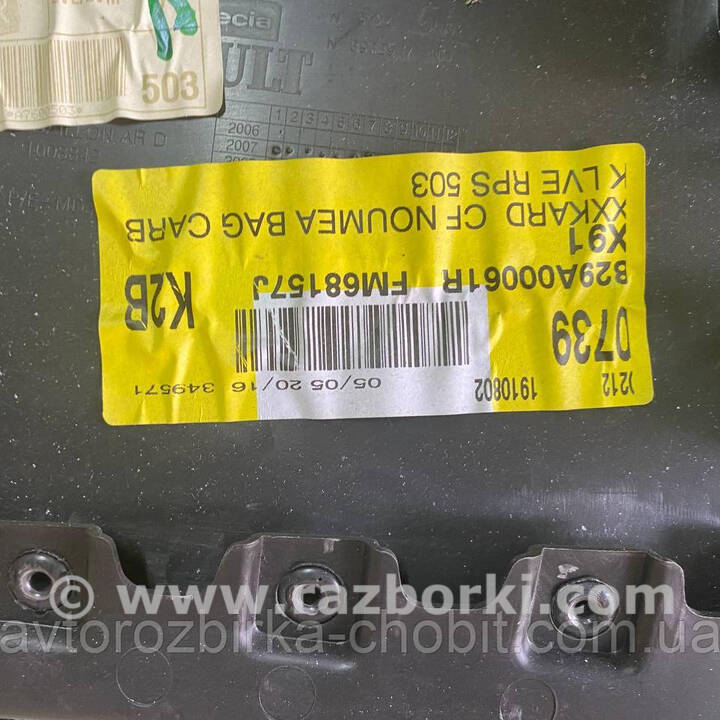 КАРТА ЗАДНІХ ПРАВИХ ДВЕРЕЙ RENAULT LAGUNA III (07-15) 829A00061R