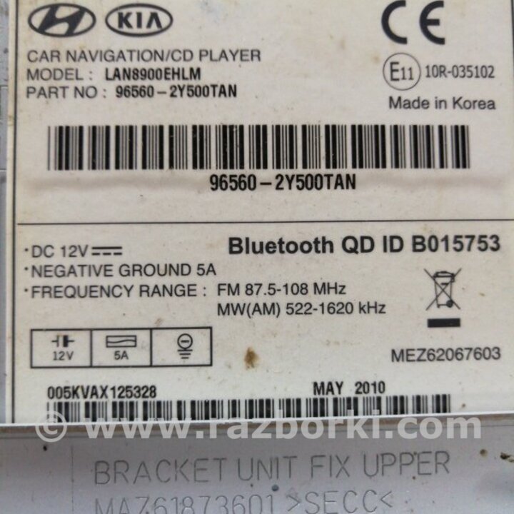 МАГНИТОЛА HYUNDAI IX35 I LM/EL TUCSON (10-17) 965602Y500TAN
