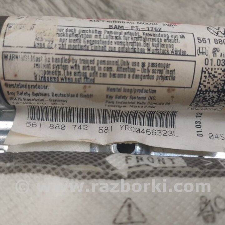 ПОДУШКА БЕЗПЕКИ (ШТОРА) VOLKSWAGEN PASSAT B7 (09.2010-06.2015) 561880742