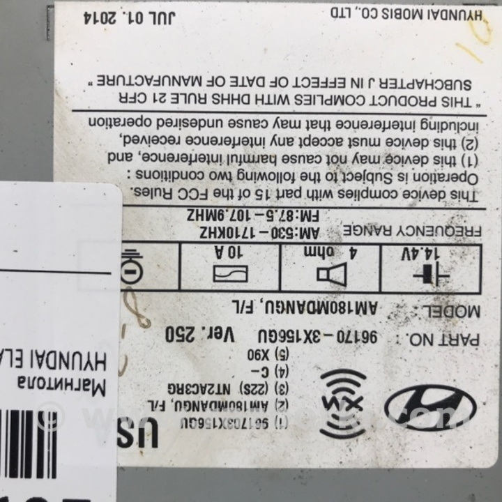 МАГНІТОЛА HYUNDAI ELANTRA V MD (10-16) 96170-3X156GU