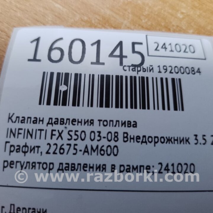 КЛАПАН ТИСКУ ПАЛИВА INFINITI FX S50 (03-08) 22675-AM600