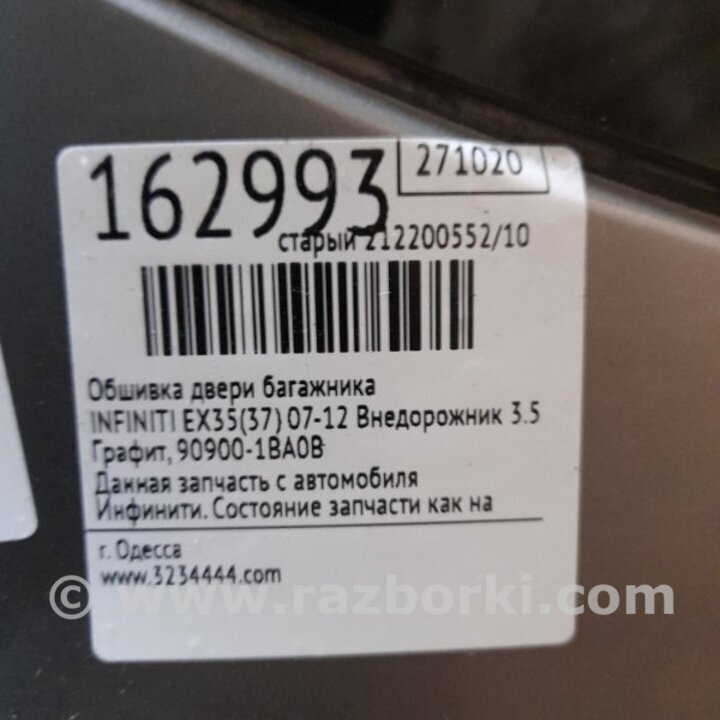 ОБШИВКА КРИШКИ БАГАЖНИКА INFINITI EX35 (37) (07-12) 90900-1BA0B