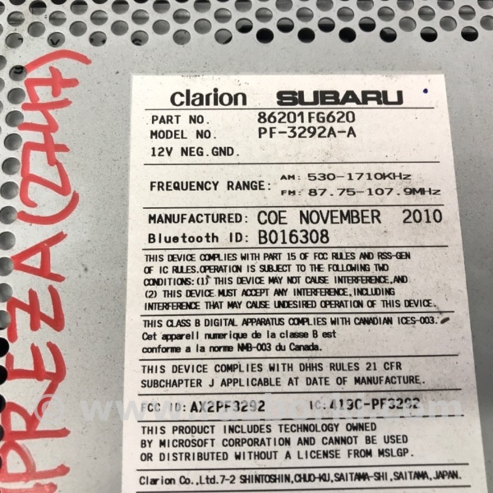 МАГНІТОЛА SUBARU IMPREZA III GE GH (07-14) 86201FG620