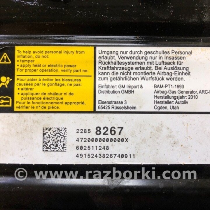 ПОДУШКА БЕЗПЕКИ ПАСАЖИРА CHEVROLET EQUINOX II (09-17) 22858267