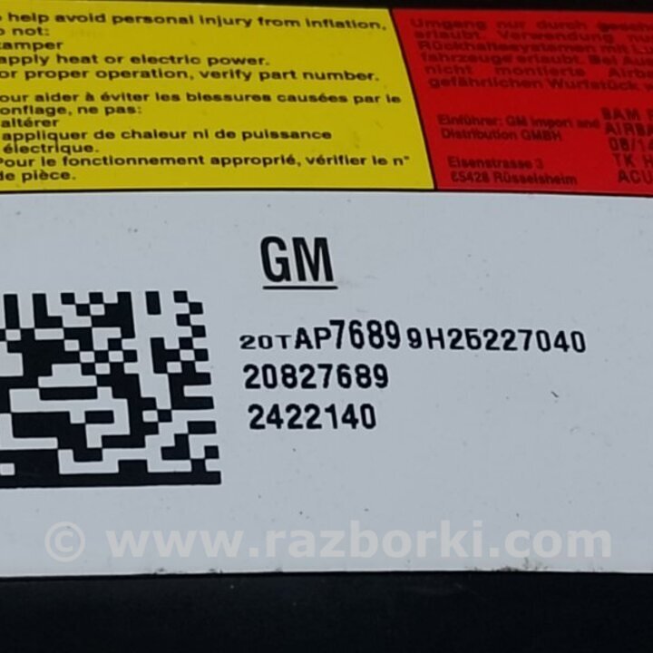 ПОДУШКА БЕЗПЕКИ В СИДІННІ CHEVROLET EQUINOX II (09-17) 20827689